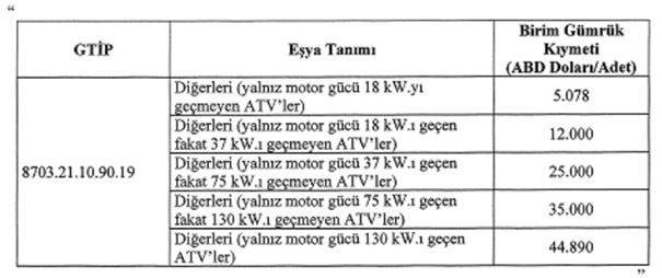 Konu: Binek olarak kullanılan ATV’lerin ithalatı gözetim uygulaması kapsamına alınmıştır.