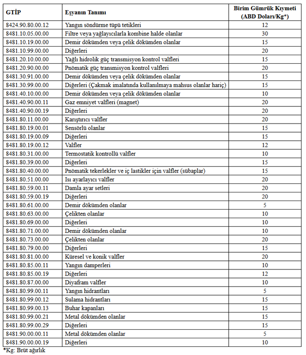 ✅ Aerosol sprey üretiminde kullanılan ve 84.81 Gümrük Tarife Pozisyonunda sınıflandırılan püskürtme mekanizmaları niteliğindeki valf ithalatında bu Tebliğ hükümleri uygulanmaz.