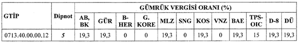 🔷0713.40.00.00.12 GTİP’te sınıflandırılan “Yeşil Mercimek” ithalatında gümrük vergisi oranı, %19,3’ten 30 Nisan 2026 tarihine kadar (bu tarih dâhil) %10 olarak uygulanmasına karar verilmiştir.